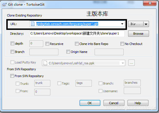 “Local Branch”,”Remote Branch”,“Remote URL”这3栏必须正确才能“拉”数据。