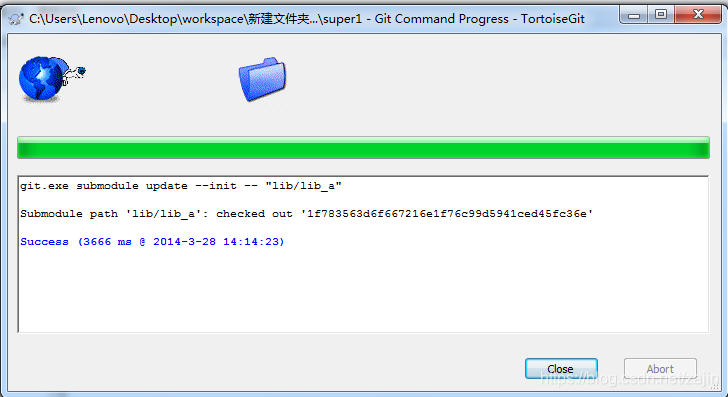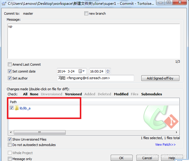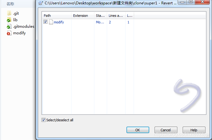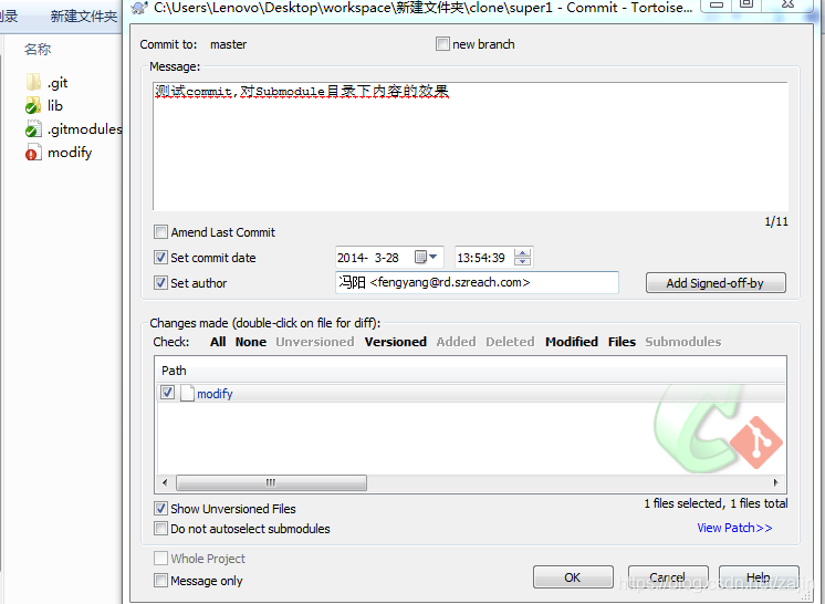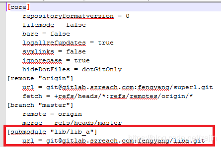 注:此主版本库(super.git)就变成了一个包含子模组的版本库。