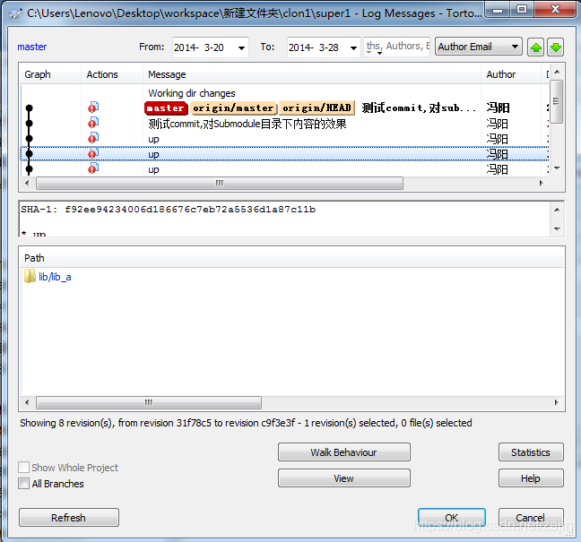 3. 对主Git库工作区作commit、checkout、revert、pull、push等更改Git工作区内容的操作时,查看Submodule目录下内容的效果