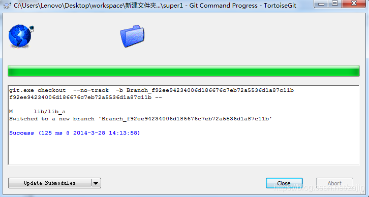 执行Submodule Update…操作后就会把子模组的版本库克隆下来。