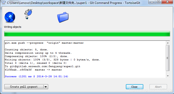 当在主Git库工作区中将主Git本地库的数据推送到主Git远程库中。