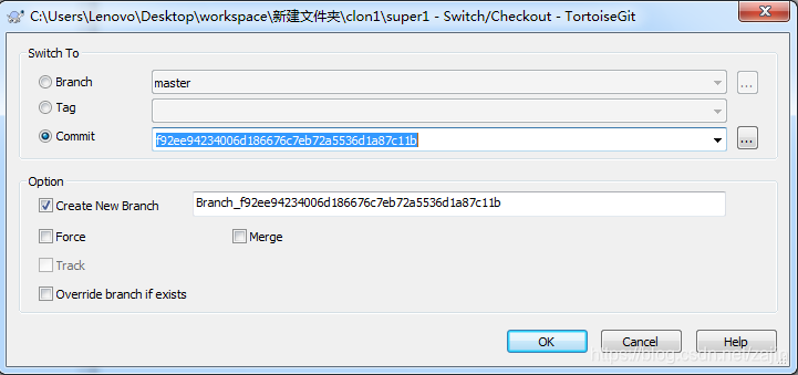 在执行Submodule Update…操作更新出子模组后,都以某个具体的提交版本进行检出,进入子模组目录,会发现其处于非跟踪状态。