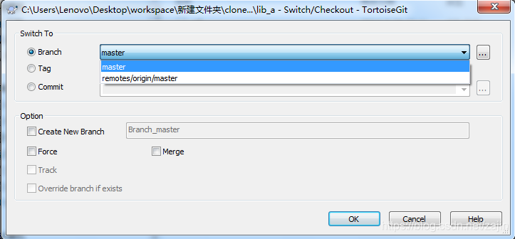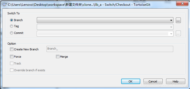 在Git工作区内的某目录上右击,选择“Swicht/Checkout…”在Swicht/Checkout…Checkout窗口中,在Switch to Commmit中列出需要切换的commit历史记录,在此列表中选择需要切换到的commit历史记录,以后点击“Ok”按钮。
