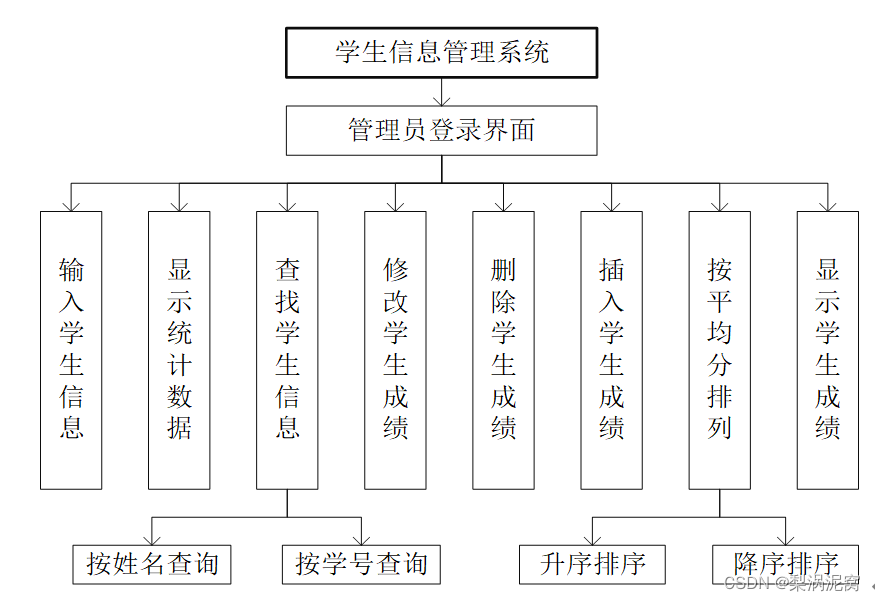 想设计一个二级菜单,以容纳降序或升序的选择及按姓名或学号查询信息。按姓名查询时想了一下要用什么算法来进行匹配,考虑到名字并不是很长的字符串,用了BF算法来进行查找匹配姓名,其他算法也有想过,但是相比BF算法代码量大而且复杂度差不多,最终还是选择BF算法。