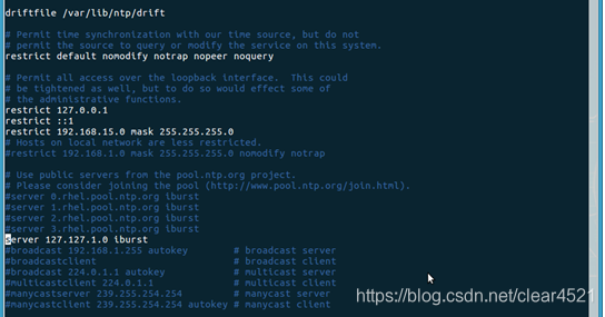 一定要按照ntp.conf注释的地方,打开注释或者在注释上下行添加,注意顺序,如果顺序错误,ntp服务也是起不来的。