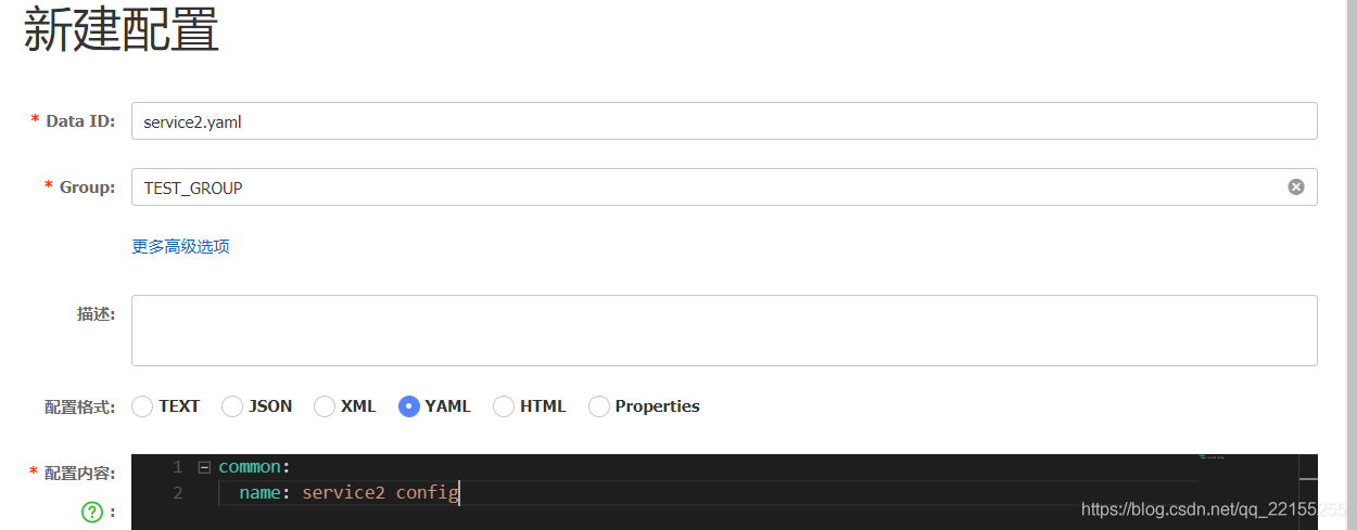 首先在nacos发布配置,我们规划了两个服务service1、service2 ,并且想对这两个服务的配置进行集中维护。