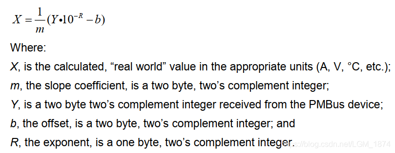 主机系统使用以下等式来转换从PMBus设备接收的值: