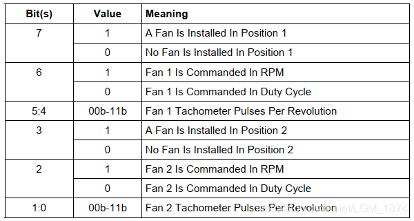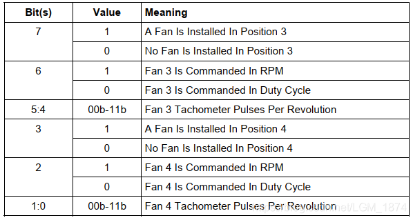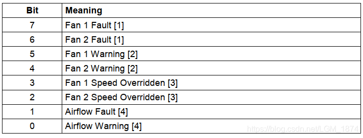注释1:通常,如果风扇完全失效或根本无法提供冷却所嵌入设备或系统所需的最低RPM,则将这些位置1。 这些条件是否可由用户编程,以及提供此类编程的方法留给设备制造商。