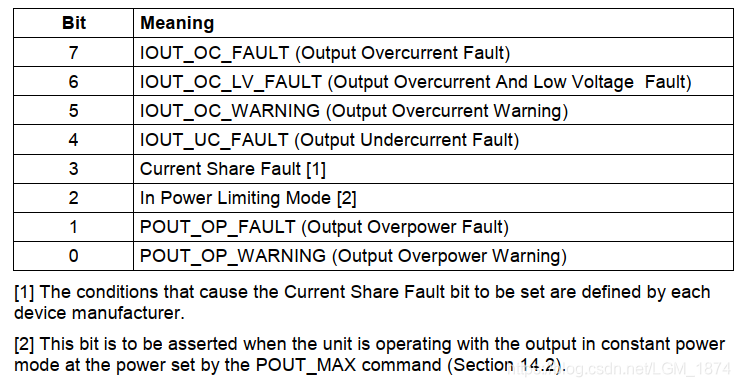 | 4 | IOUT_OC_FAULT | 发生输出过流故障 | |