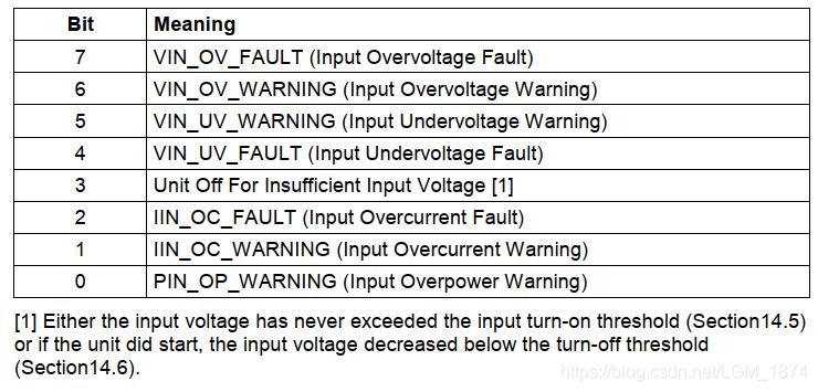 | 3 | VIN_UV_FAULT | 发生输入欠压故障 | |