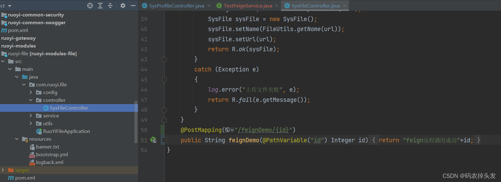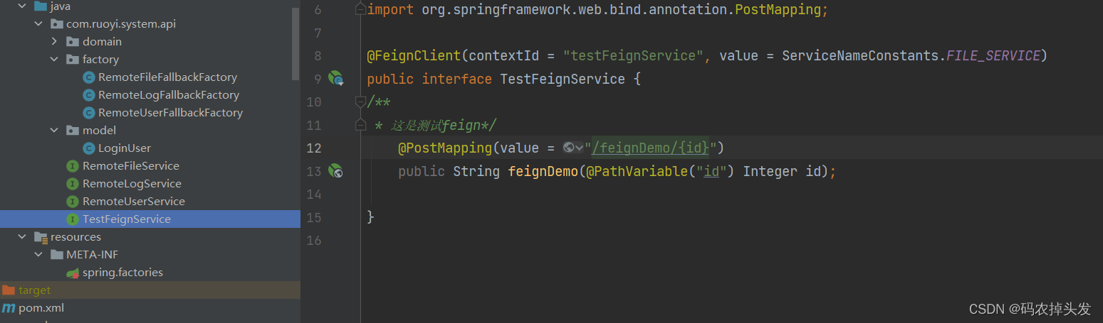 在RuoYiFileApplication中写个方法Demo用于RuoYiSystemApplication调用
