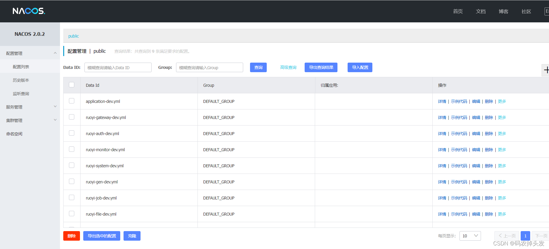 2.nacos在配置完数据源之后输入网址(localhost:8848/nacos)可以看到以下界面