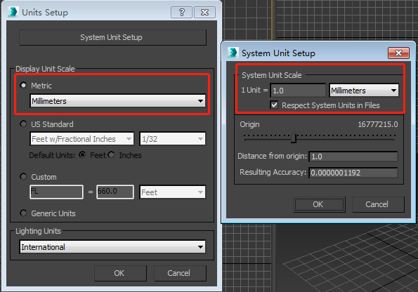 - Step3:安装3d max 2015,安装opencollada插件。在导入.IGES前,先设置3d max的单位信息,具体设置如下图2所示;