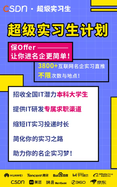 CSDN·超级实习生测评名单收集超级实习生计划,名企实习保offer,进名企更简单!
