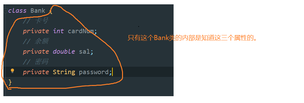 拿银行卡这个类来说,对于银行卡的卡号,余额,密码这三个属性,如果这三个属性直接暴露在外部,直接就在卡片上贴着,谁都能看见,这是非常不合理的,不能让这些属性通过对象直接就能访问。