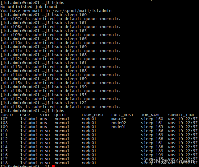 105 lsfadmi PEND normal node01 sleep 160 Nov 19 22:51
