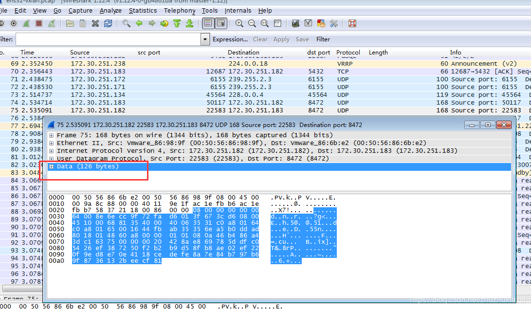 调整Wireshark配置,让8472端口的数据包解析为vxlan协议.