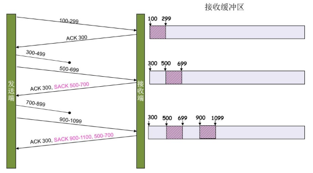 选择性确认重传,ACK还是Fast Retransmit的ACK,SACK则是汇报收到的数据,在发送端就可以根据回传的SACK来知道哪些数据到了,哪些没有到。