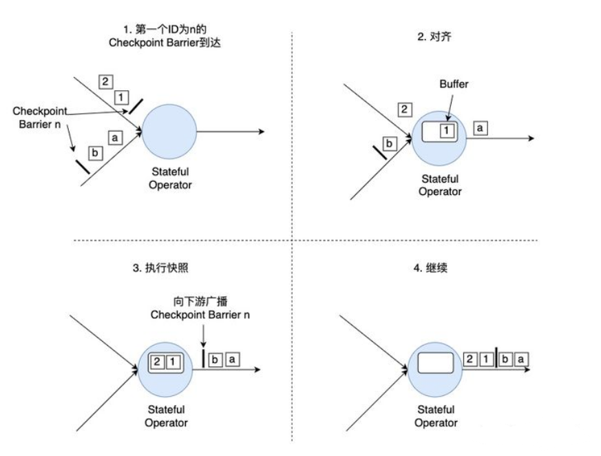 - 算子子任务将第一个输入通道的数据缓存下来,同时继续处理其他输入通道的数据,这个过程被称为对齐。
