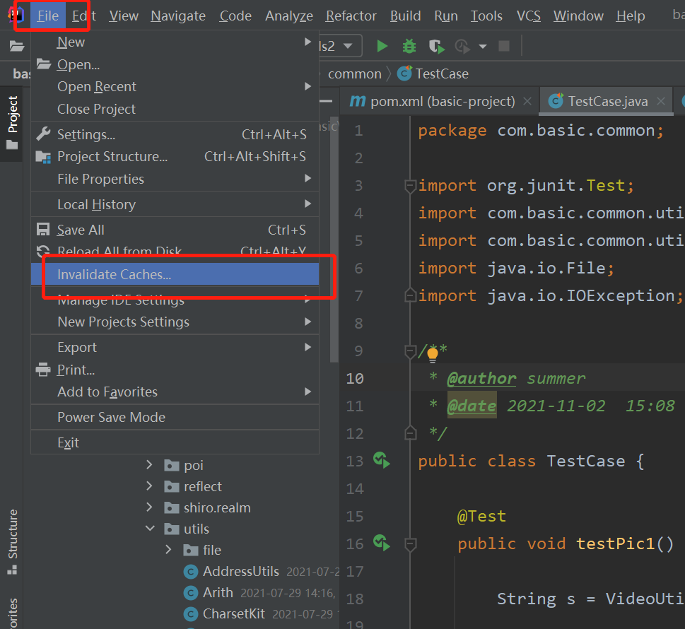 今天刚刚代码自己的idea,发现有的类中出现了爆红的错误提示。明明这个类昨天下班之前测试过了,是好用的而且爆红的类还是自己写的,在别的类中import进去怎么会提示没有作用呢。想必你也可能会在开发中遇到这种问题,那么如何解决呢。根据下面的步骤解决即可。