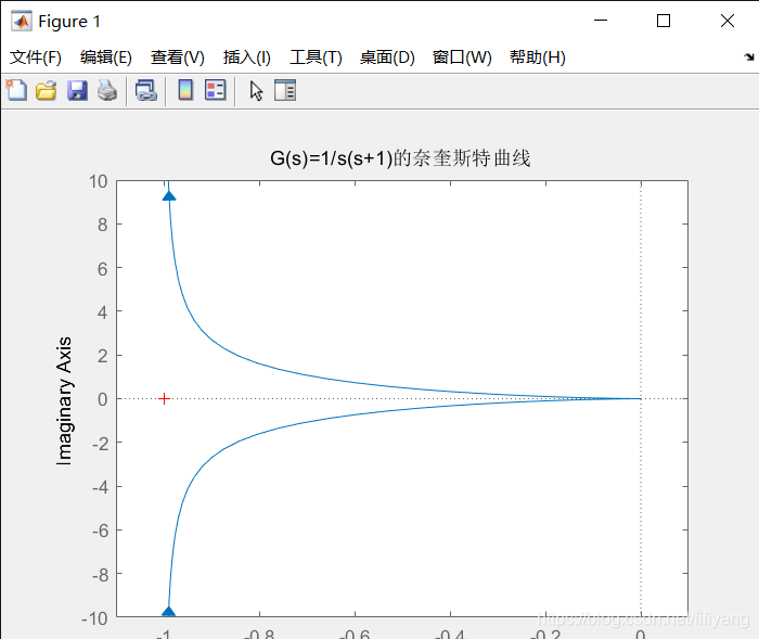 title(‘G(s)=1/s(s+1)的奈奎斯特曲线’);%图像标题