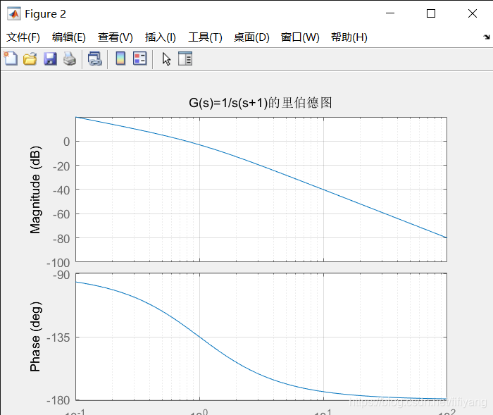 title(‘G(s)=1/s(s+1)的里伯德图’);