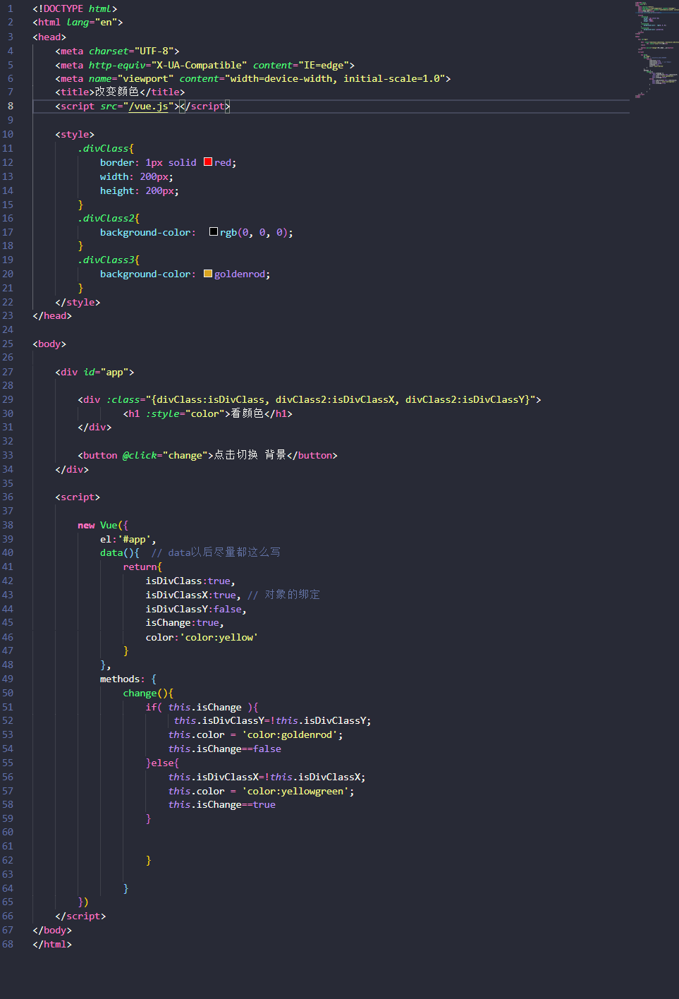 <h1 :style=”color”>看颜色</h1>