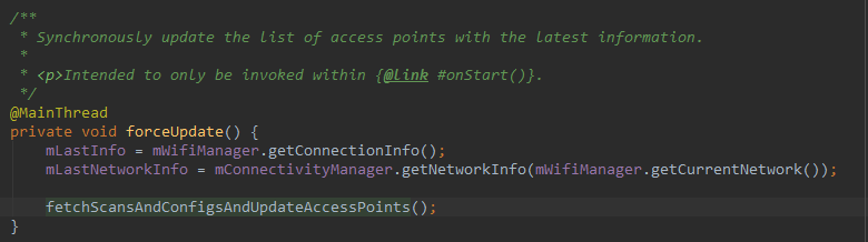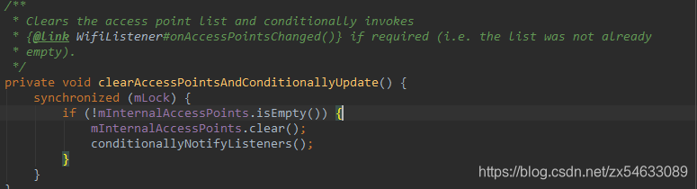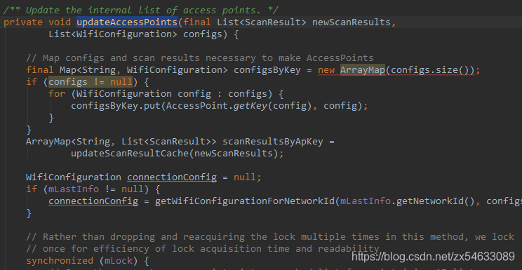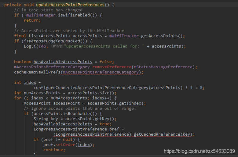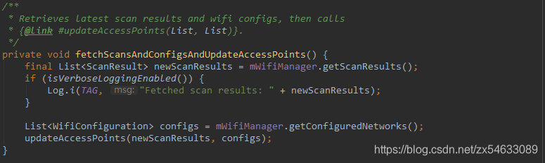 这个方法的注释说命令列表已更新,需要调用getAccessPoints来获取最新信息。我们就从这个方法开始向上和向下分析刷新的流程。