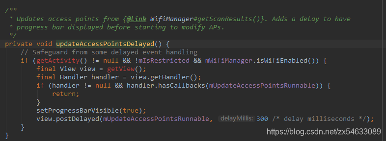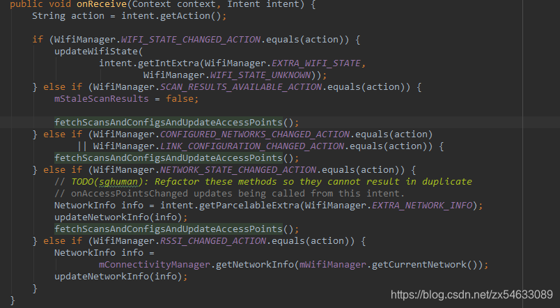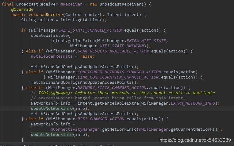 我们知道WifiSettings是监听了WifiTracker 的onAccessPointsChanged()来刷新状态的。我们先分析下哪里调用了onAccessPointsChanged()。