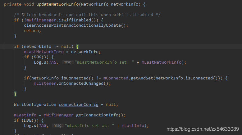广播接收到WifiManager.NETWORK_STATE_CHANGED_ACTION(连接过程中的网络变化就是接收这个广播)