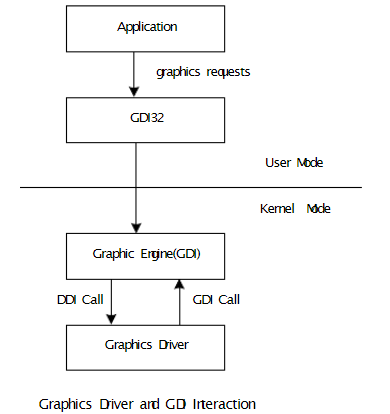 打印机的语言有很多种,每个厂商定义的打印机的驱动也有很多种接口。application需要针对每一种打印机开发不同的输出程序。为了解决这个问题,操作系统制定DDI device driver interface接口,应用无需考虑设备,只需要调用GDI函数。