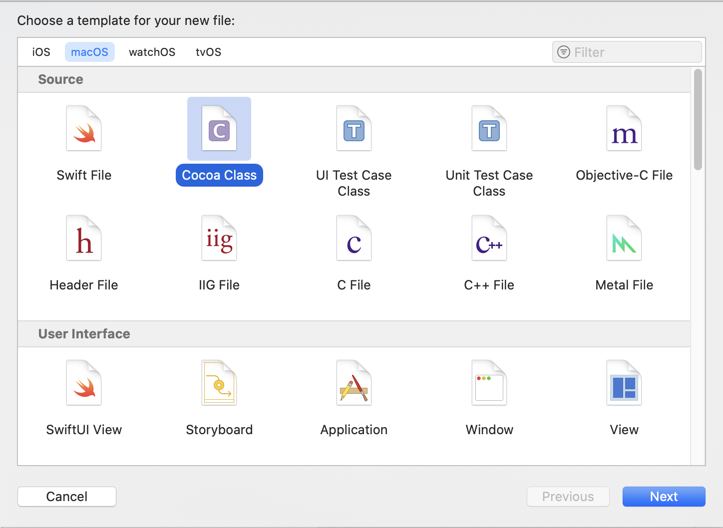 2、 选择mac OS 标签,Application栏中的Cocoa Application 然后点击next下一步