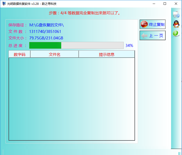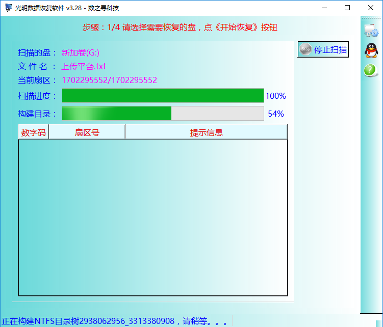 步骤2:程序会很快将扫描到的数据,放到与要恢复盘卷标名相同的目录中