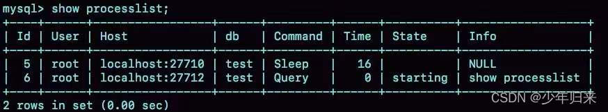 连接完成后,如果你没有后续的动作,这个连接就处于空闲状态,你可以在 show processlist 命令中看到它。文本中这个图是 show processlist 的结果,其中的 Command 列显示为“Sleep”的这一行,就表示现在系统里面有一个空闲连接。