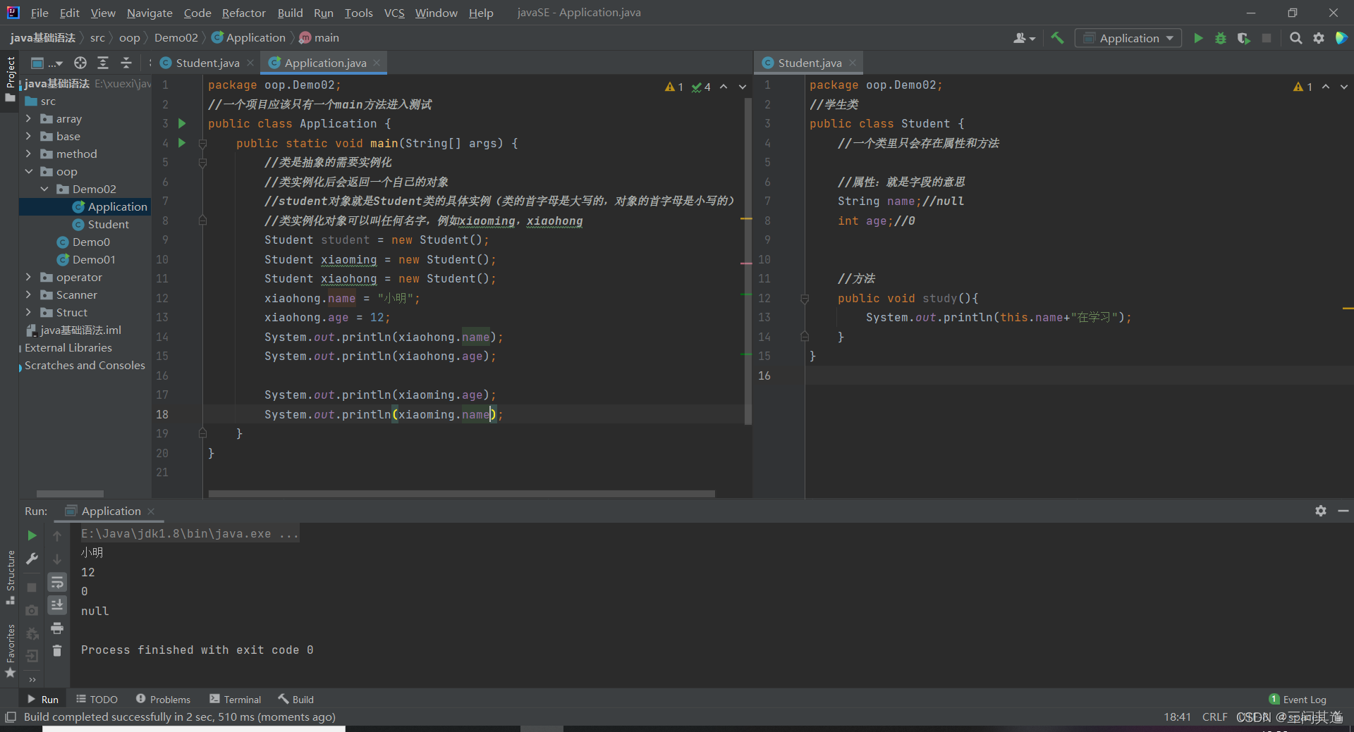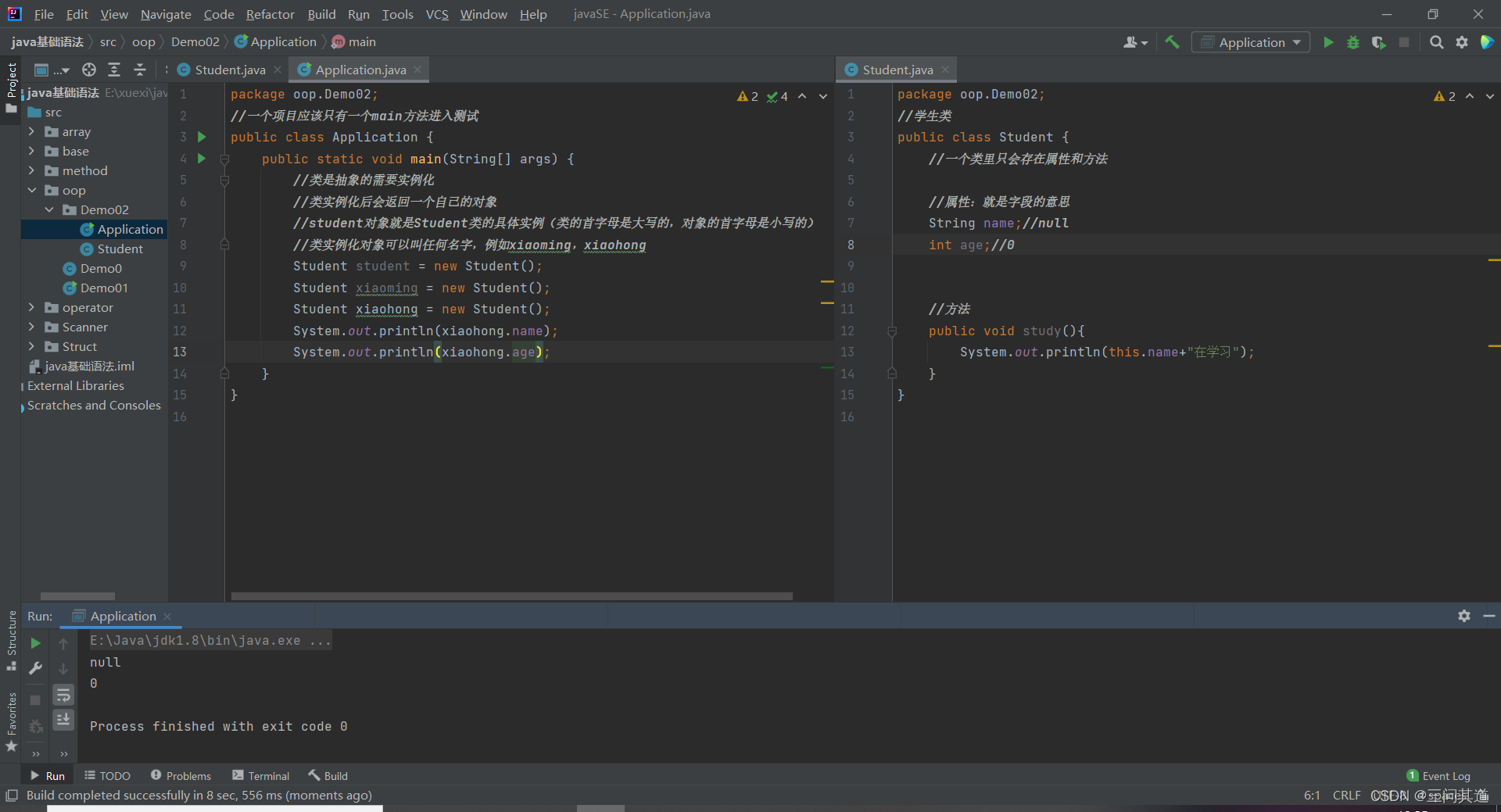 使用new关键字创建对象的时候,除了分配内存空间外,还会给创建好的对象默认初始化以及对类中构造器的调用。