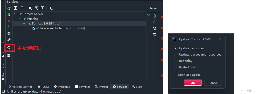 | Redeploy | 重新部署,删除war包,重新创建并部署war包,但不重启服务器 |