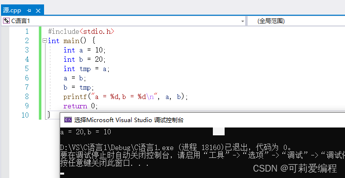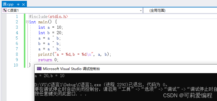【程序四】给定两个整形变量的值,将两个值的内容进行交换。