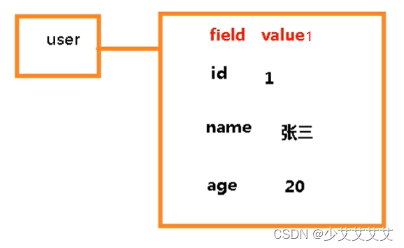 通俗来讲,hash使用键值对来存储对象,而其中value是由field与value1组成的另一个键值对。例如,现用hash存储user的信息,user作为key,name与zhangsan这个整体被当做value,以field与value1的形式存储,其中field为name,value1为zhangsan。