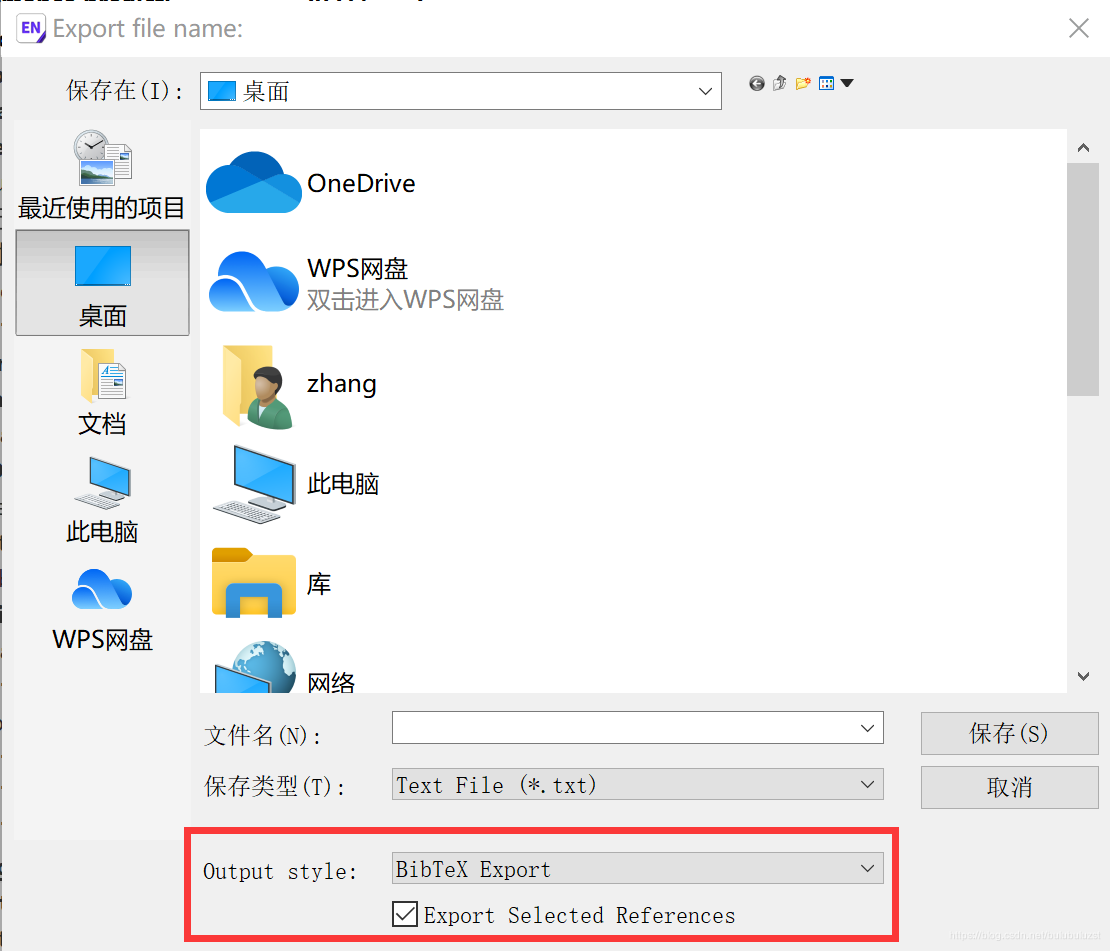 2.选中需要导出的论文,选择File-Export,在下面Output style选择BibTeX Export,存放到指定的位置。
