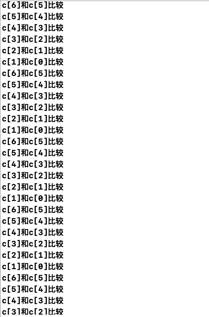 cout<<“c[“<<g<<“]”<<“和c[“<<g-1<<“]比较”<<endl;
