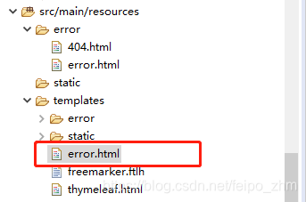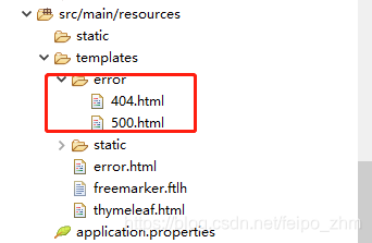 如果想精准定位到404.html或者505html的状态码,那么需要在resources/templates下再新建一个error文件包,放入404.html和500.html
