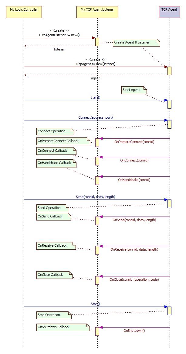 - Agent 组件:Agent 组件实质上是 Multi-Client 组件,与 Server 组件采用相同的技 术架构。一个 Agent 组件对象可同时建立和高效处理大规模 Socket 连接。
