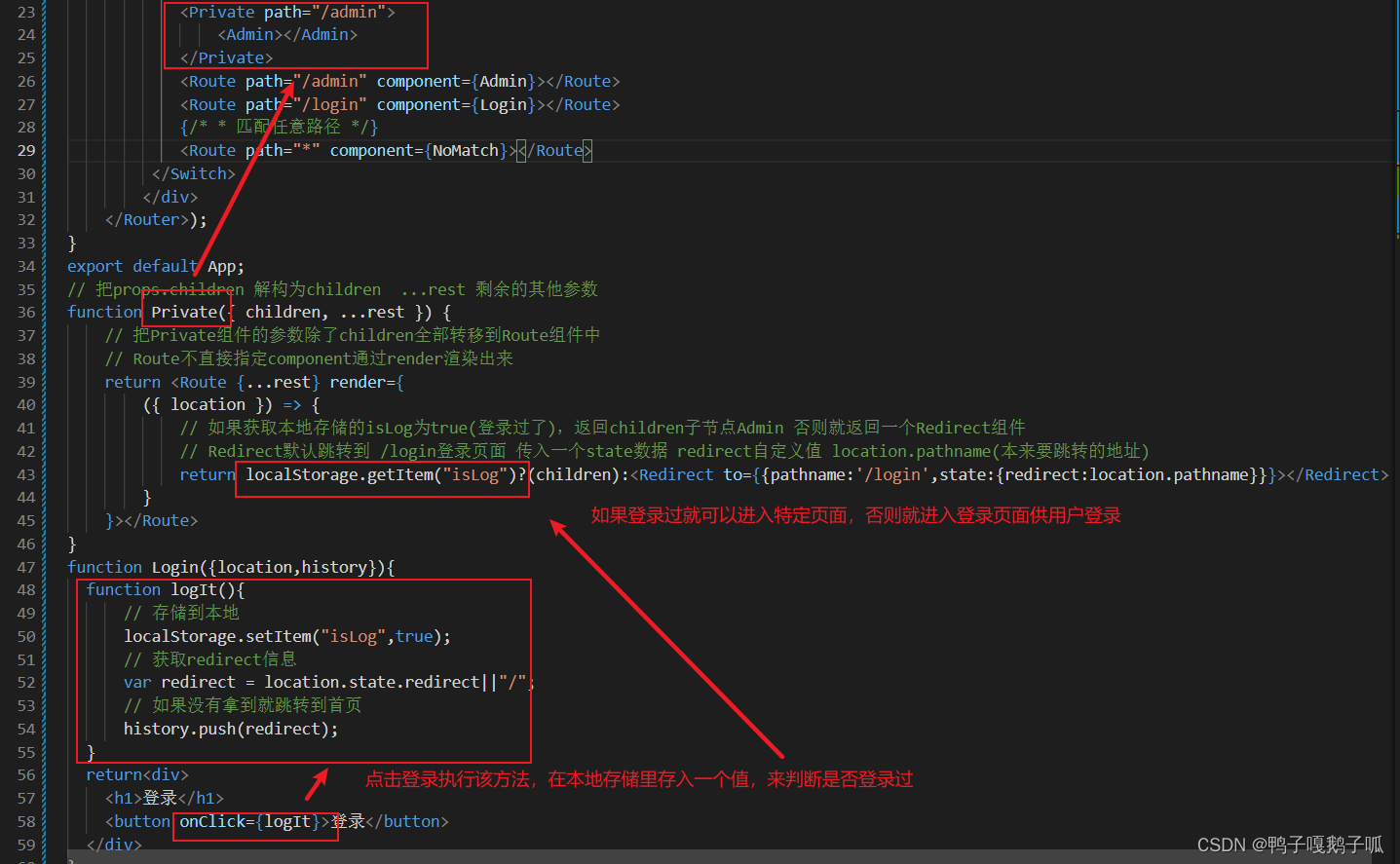 // 如果获取本地存储的isLog为true(登录过了),返回children子节点Admin 否则就返回一个Redirect组件