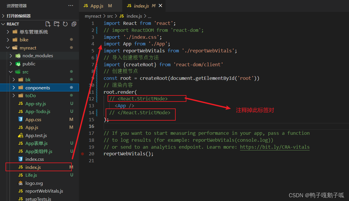 开始前的准备:本案例需要先改造一下react项目的index.js文件