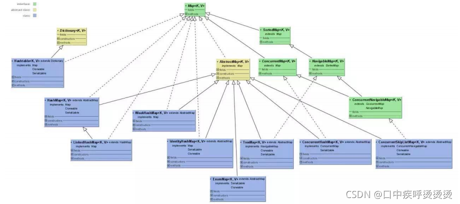 Hashtable 是遗留类,很多映射的常用功能与 HashMap 类似,不同的是它承自 Dictionary 类,并且是线程安全的,任一时间只有一个线程能写 Hashtable,并发性不如 ConcurrentHashMap,因为 ConcurrentHashMap 引入了分段锁。Hashtable 不建议在新代码中使用,不需要线程安全的场合可以用 HashMap 替换,需要线程安全的场合可以用 ConcurrentHashMap 替换。