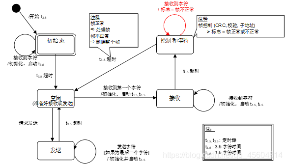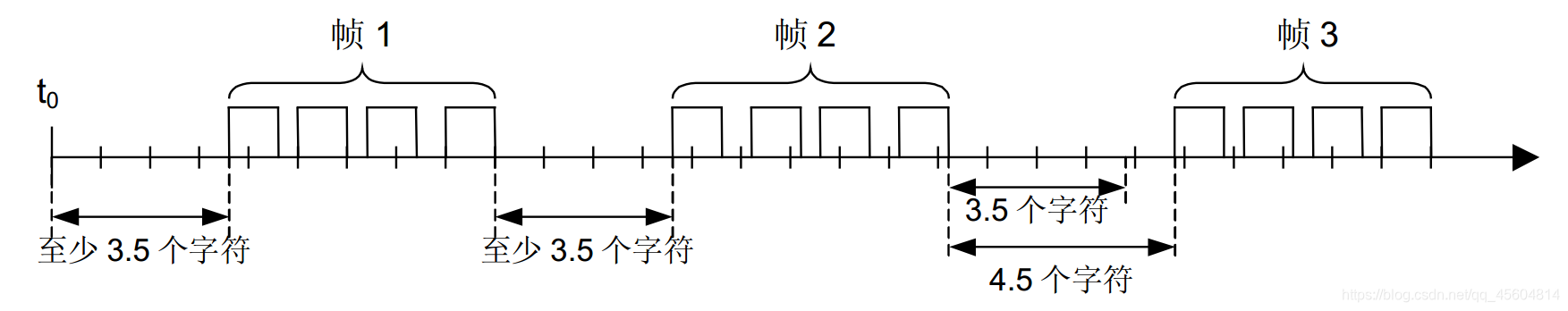如果两个字符之间的空闲间隔大于1.5个字符时间,则报文帧被认为不完整,应该被接收节点丢弃。