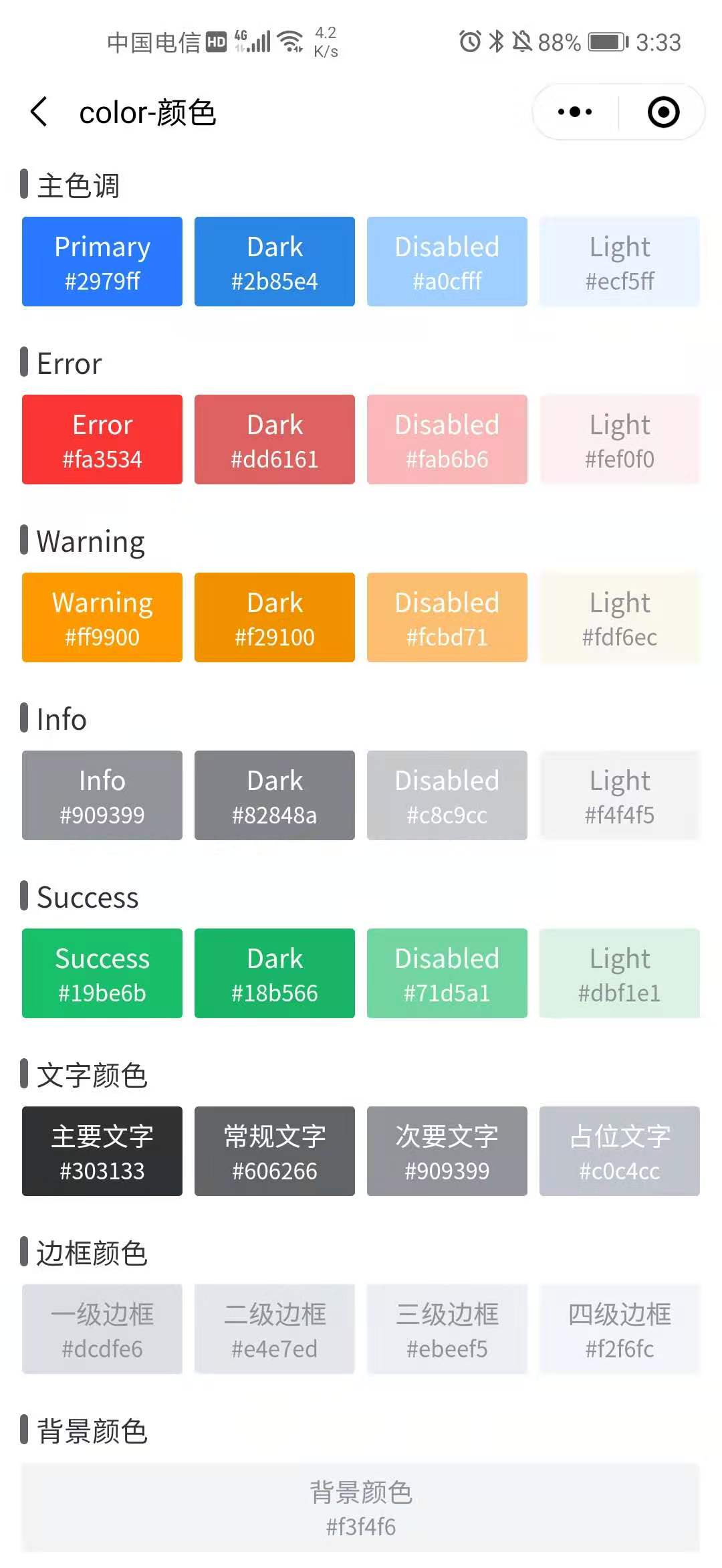 uview 分别提炼了4种用于文字颜色,分别是:主要文字、常规文字、次要文字、占位文字颜色。 主要文字颜色一般用于内容的标题等,如新闻列表的标题