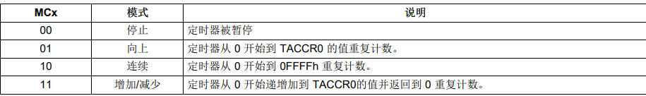TA1CTL |= MC_1;//Up Mode模式下,16bit Timer计数器 TAR会从0递增到TACCR0,然后回到0,重复这个过程