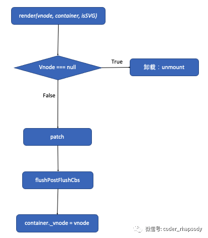 patch(container._vnode || null, vnode, container, null, null, null, isSVG)