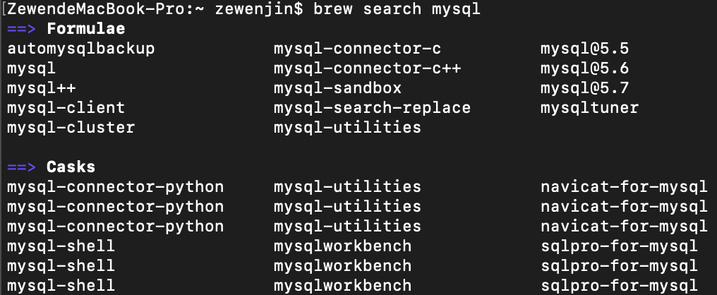 brew search 命令可以用来寻找利用brew install可以支持安装的软件包